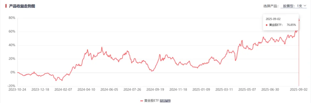 其代表家具为黄金ETF,全称为永赢中证沪深港黄金产业股票ETF。下图是此家具近2年来的任职收益图,从客岁9月任职收益率低点2%操纵到当今沿路攀升至76.85%。