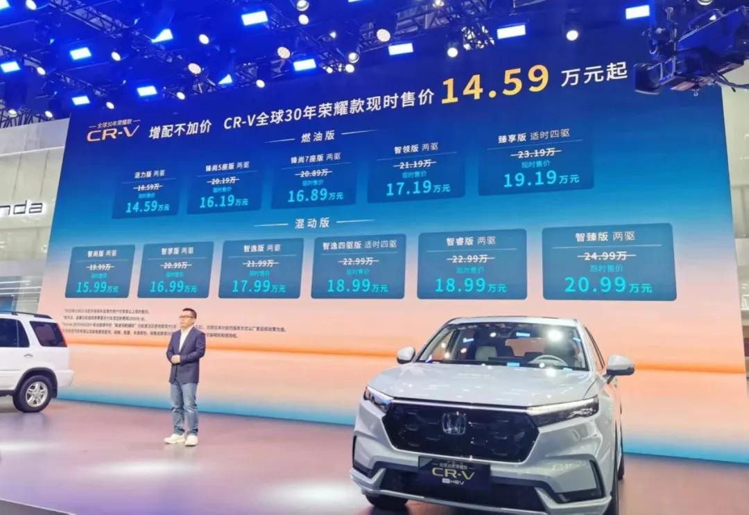 9月22日,于中国武汉,东风本田CR-V全球30年荣耀款(以下简称“CR-V荣耀款”)带着“增配降价”的策略开阔登场,这款起售价下探至14.59万元的经典车型,是东风本田积极打发价钱内卷打出的一张关节牌。